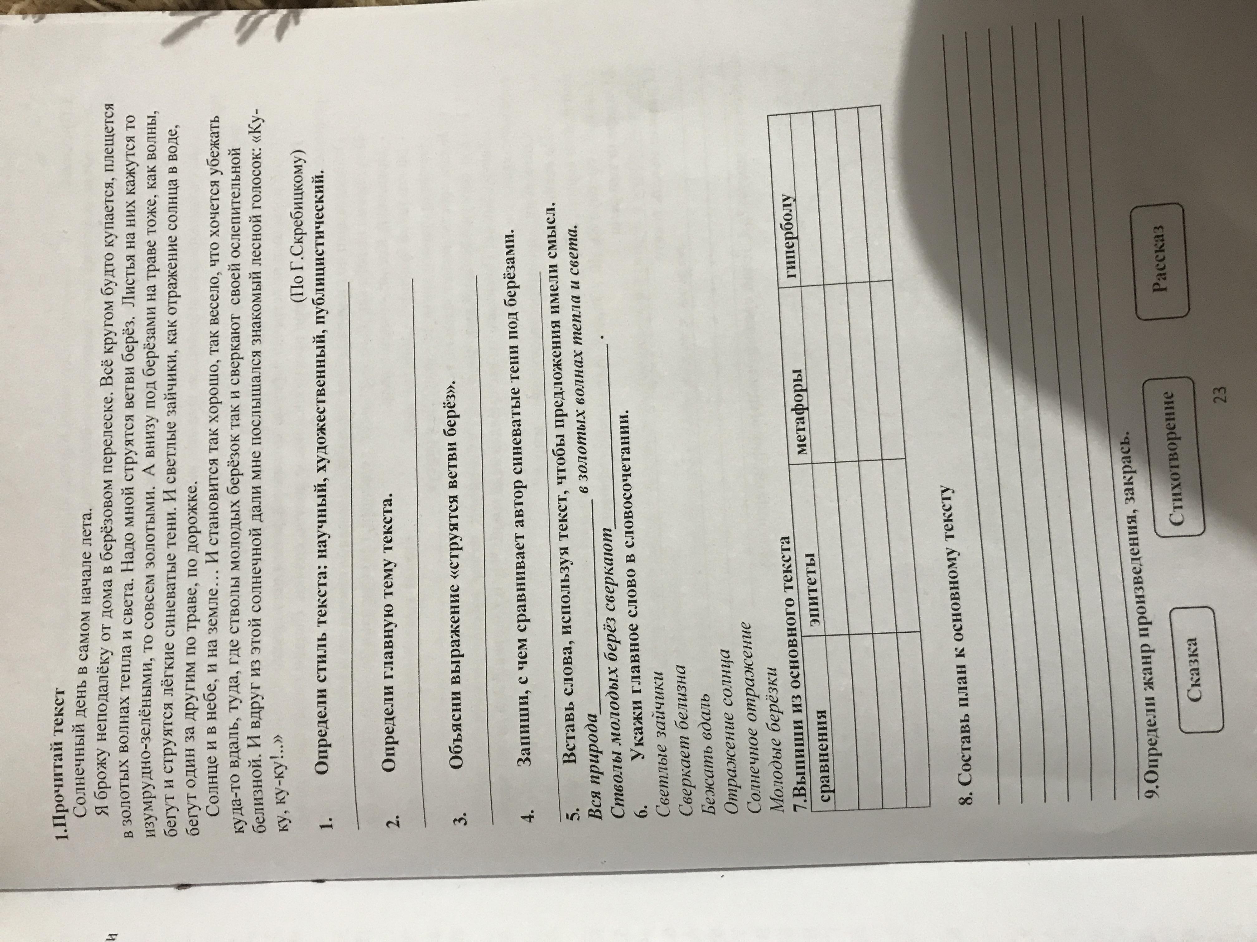 Берёзки (какие?) молодые. Берёзки - главное. 7. Сравнения: Как волны,как отражение,будто купается. Эпитеты: берёзовым, золотых, изумрудно-зелёными,золотыми,лёгкие,синеватые, светлые, молодых, ослепительной,знакомый. Гипербола: совсем золотые.