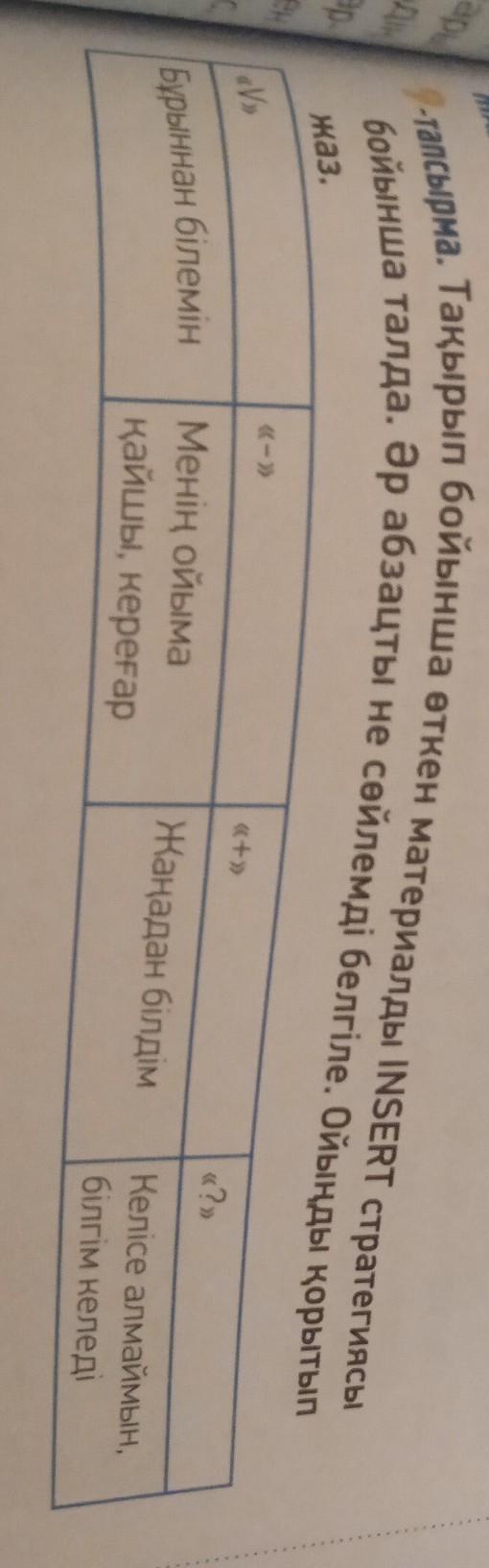-ranama. Тақырып бойынша өткен материалды INSERT стратегиясы Койынша талда. Әр абзацты не сөйлемді белгіле, Ойыңды қорытып жаз