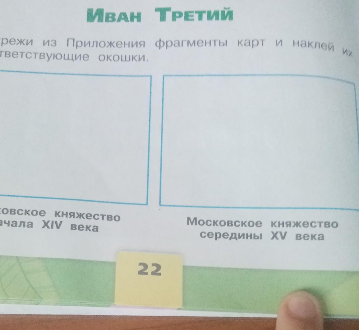 ИВАН ТРЕТий 1. Вырежи из Приложения фрагменты карт и наклей их В соответствующие окошки. Московское княжество начала XIV века Московское княжество середины XV века
