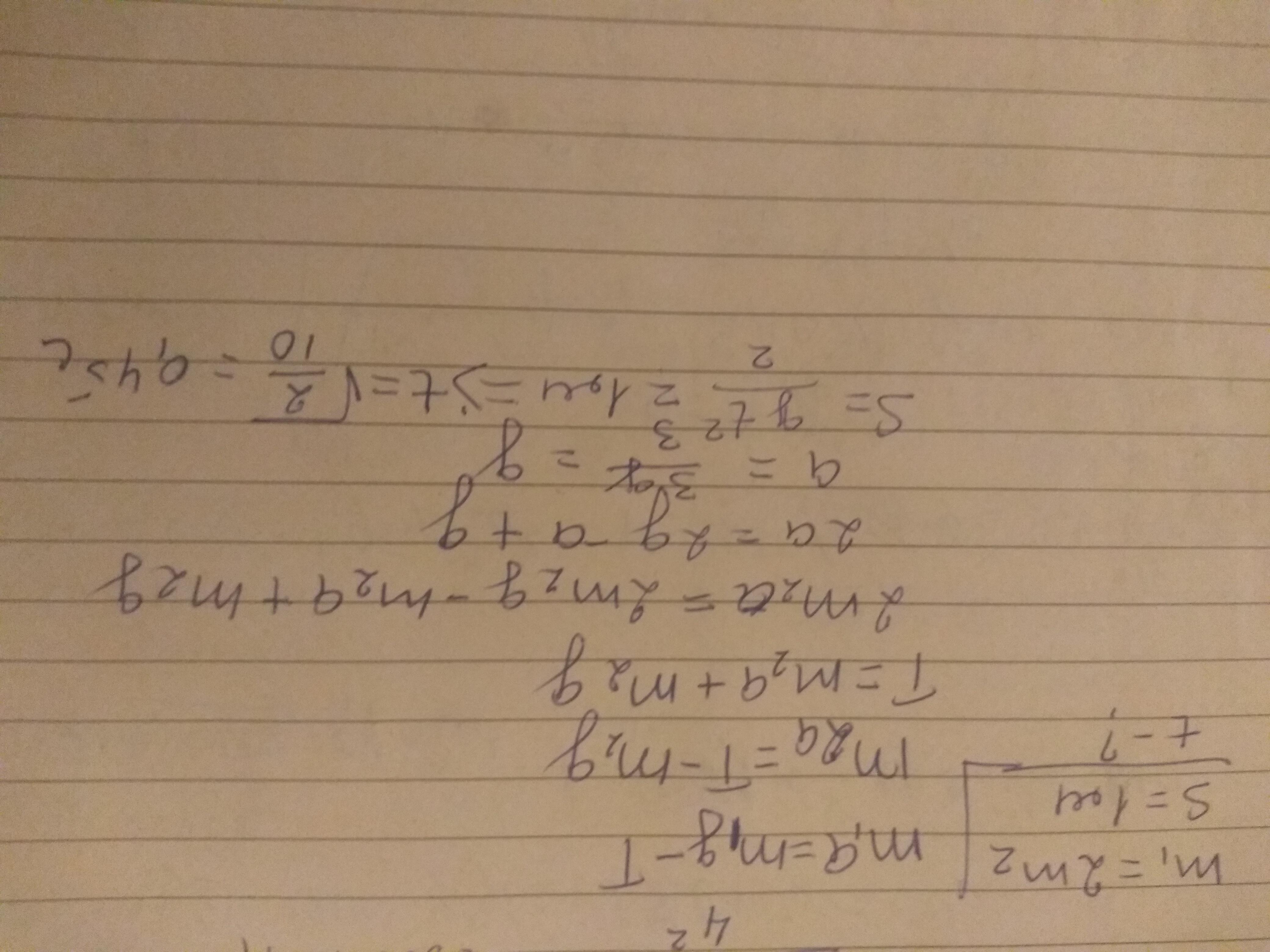 Два тягарці різної маси підвішені на одній висоті на нитці, яка перекинута через невагомий блок. Маса одного тягарця в 2 рази більша від маси другого. Через який час від початку руху один тягарець буде на 1 м вище іншого?