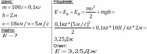 Птица массой 150 г, летит на высоте 3м со скоростью 18 ки/ч. Определите кинетическую и потенциальную энергии птицы.