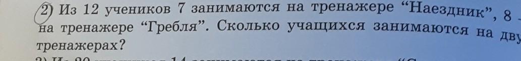 15 - 12 = 3 чел - занимаются на двух тренажерах