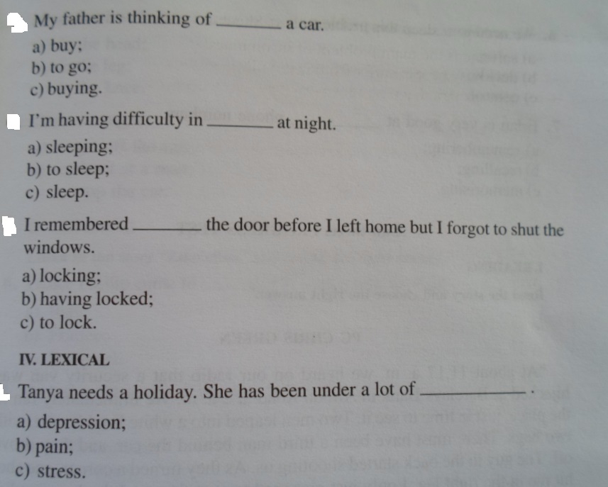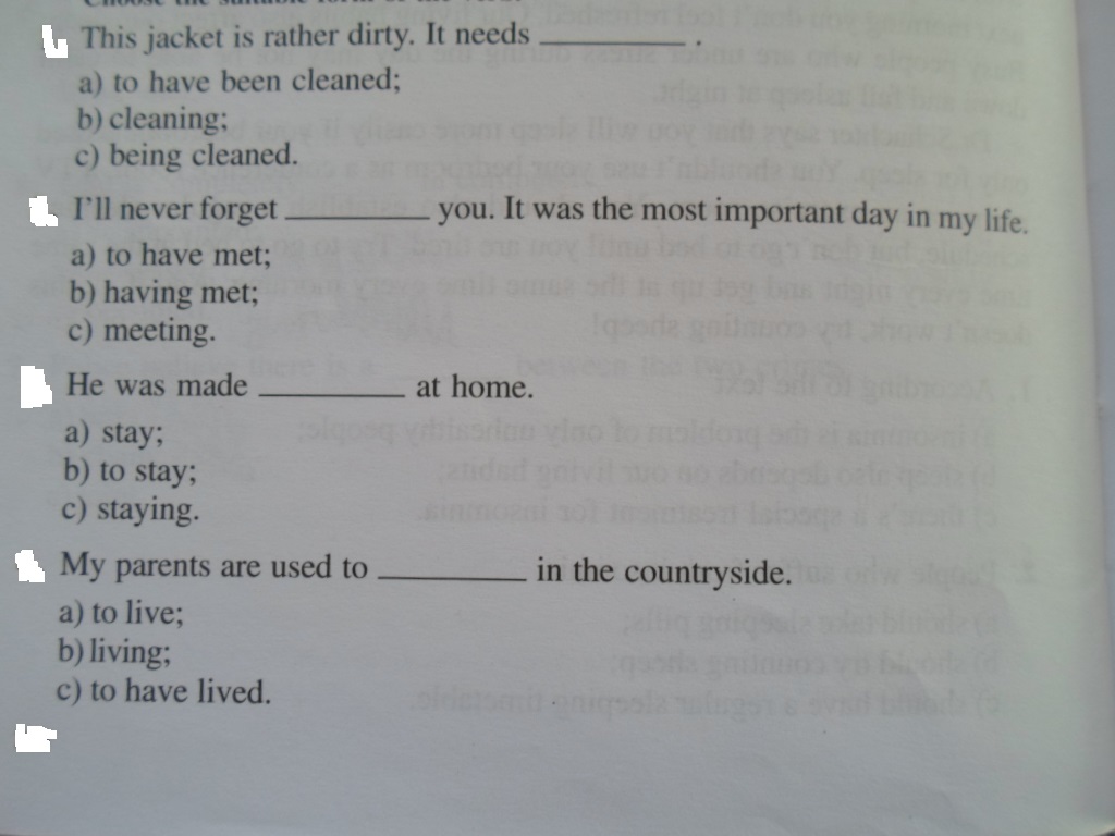 IV 1 stress 1 cleaning 2 meeting 3 to stay 4 living