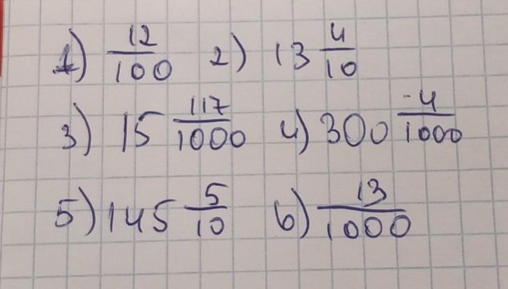 12/100, 13 4/100, 15 177/1000, 300 4/1000, 145 5/10, 13/1000.