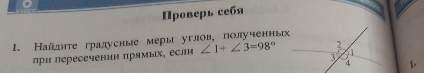 ∠1 = ∠3, т.к. они вертикальные |=> 98:2=49° - ∠1, ∠3