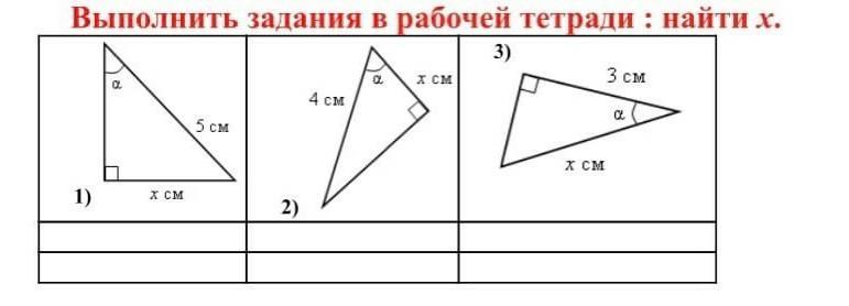 3) cos α = 3/x ⇒ x = 3/cos α