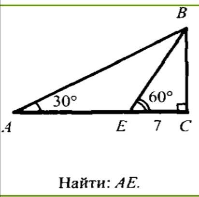 ΔАВЕ: ∠АВЕ=180°-30°-120°=30°⇒АЕ=ВЕ=14