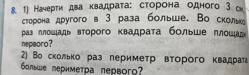 Ответ:1) в 9 раз площадь второго квадрата больше, чем первого.