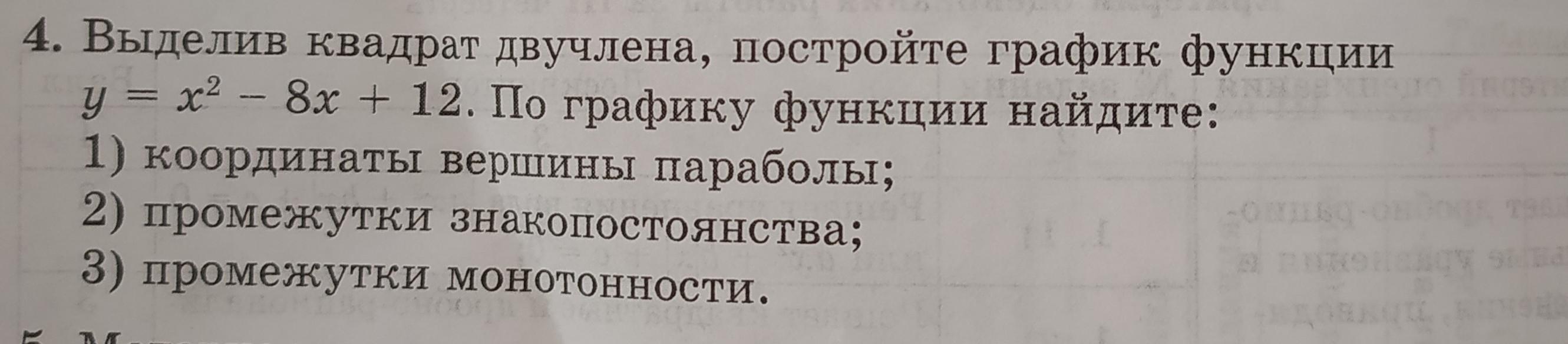 1) х²-8х+12=(х-4)²-4, координаты вершины х=4; у=-4