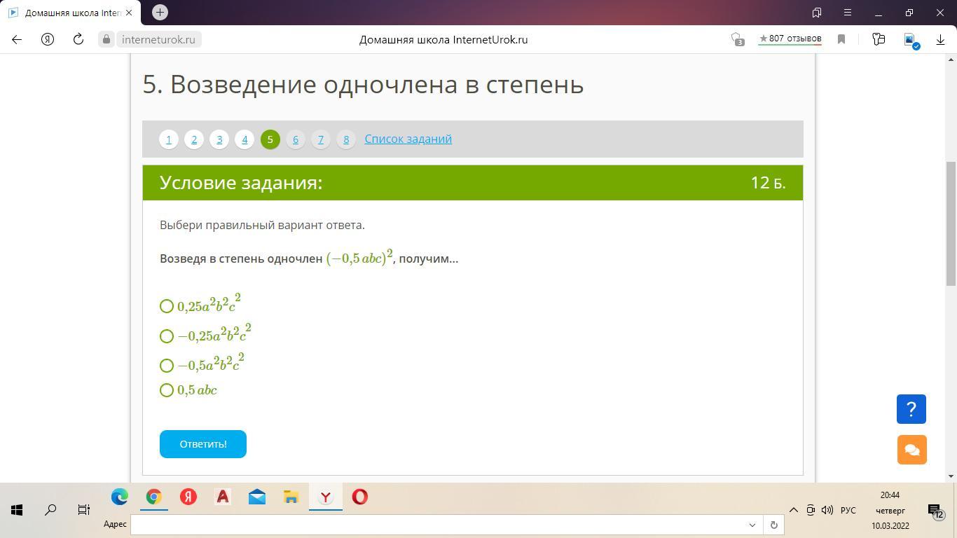 1 вариант ответа