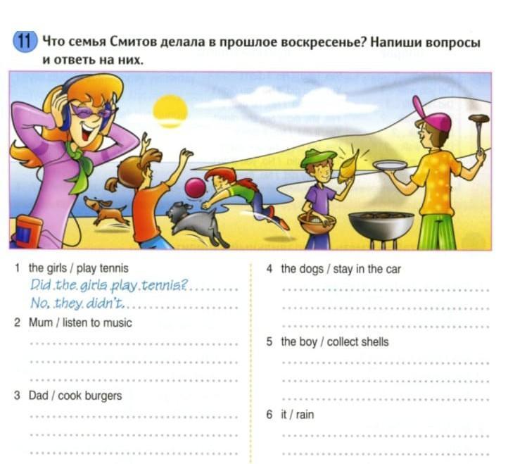 11 Что семья Смитов делала в прошлое воскресенье? Напиши вопросы