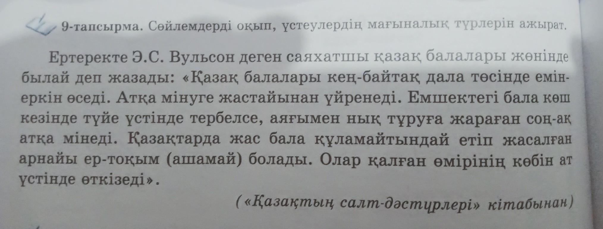 9-тапсырма Сөйлемдерді оқып,үстеулердің мағыналық түрлерін ажырат