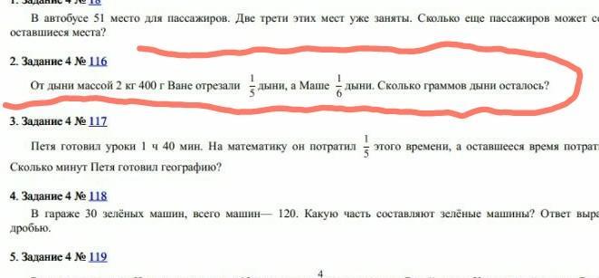 2) 1/6 ×2400= 400 (г) - отрезали Маше