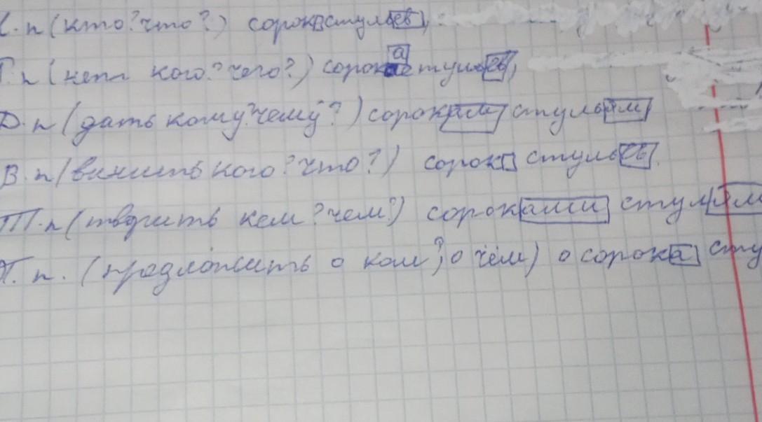 все просто берешь второе слово:сто книг и подставляет что в скобках например р.п нет кого? чего ста книг ,д.п дать кому чему ста книгам ,п.п говорить,предложить о ком? о чем ? о ста книгах
