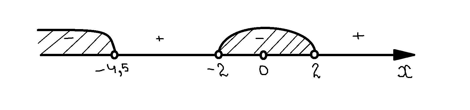 Расположим эти точки на координатной прямой и найдём знак на каждом промежутке(см. вложение) (знак отрицательный)