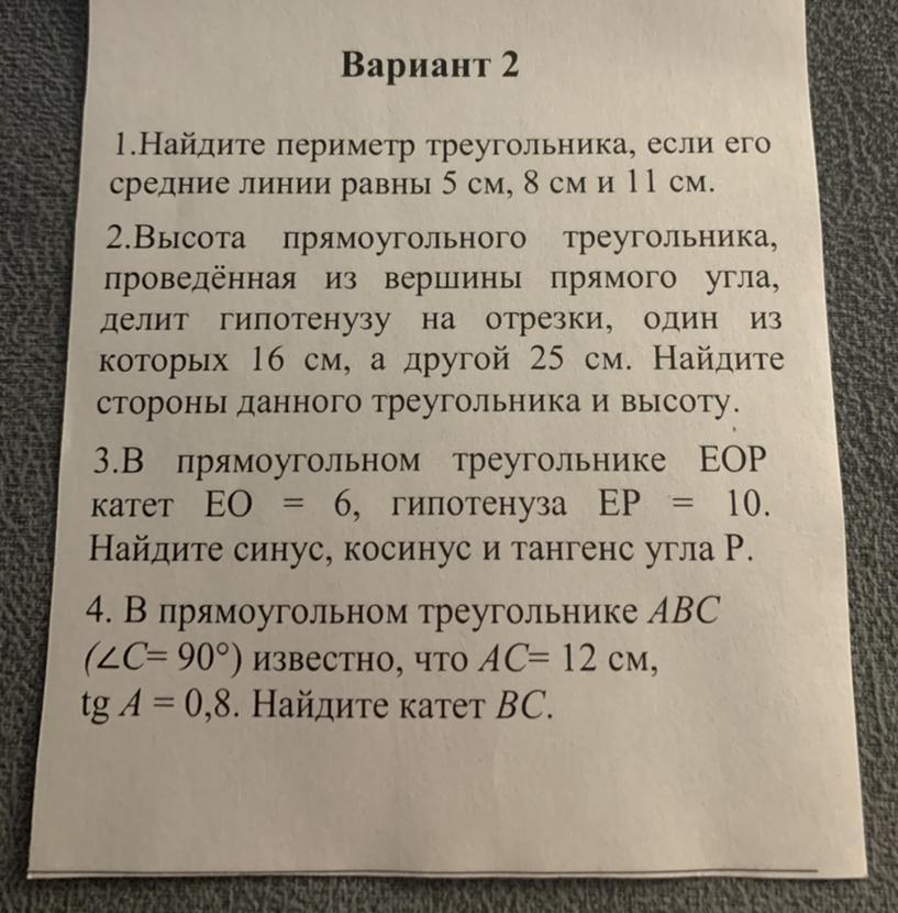 1) средняя линия ∆ ровна половине параллельной ей стороне , а значит стороны ∆ равны 10 см, 16 см и 22 см