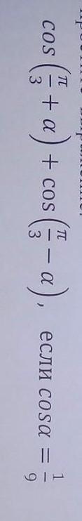 cos(п/3+a)+cos(п/3-a)=2cosП/3cosa=2*1/2*1/9=1/9
