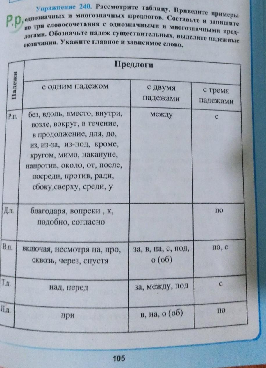 рассмотрите таблицу приведите примеры однозначных и многозначных предлогов составьте и запишите по три словосочетания с однозначными и многозначными предлогами обозначьте падеж существительных выделите падежные окончания укажите главное и зависимое слово