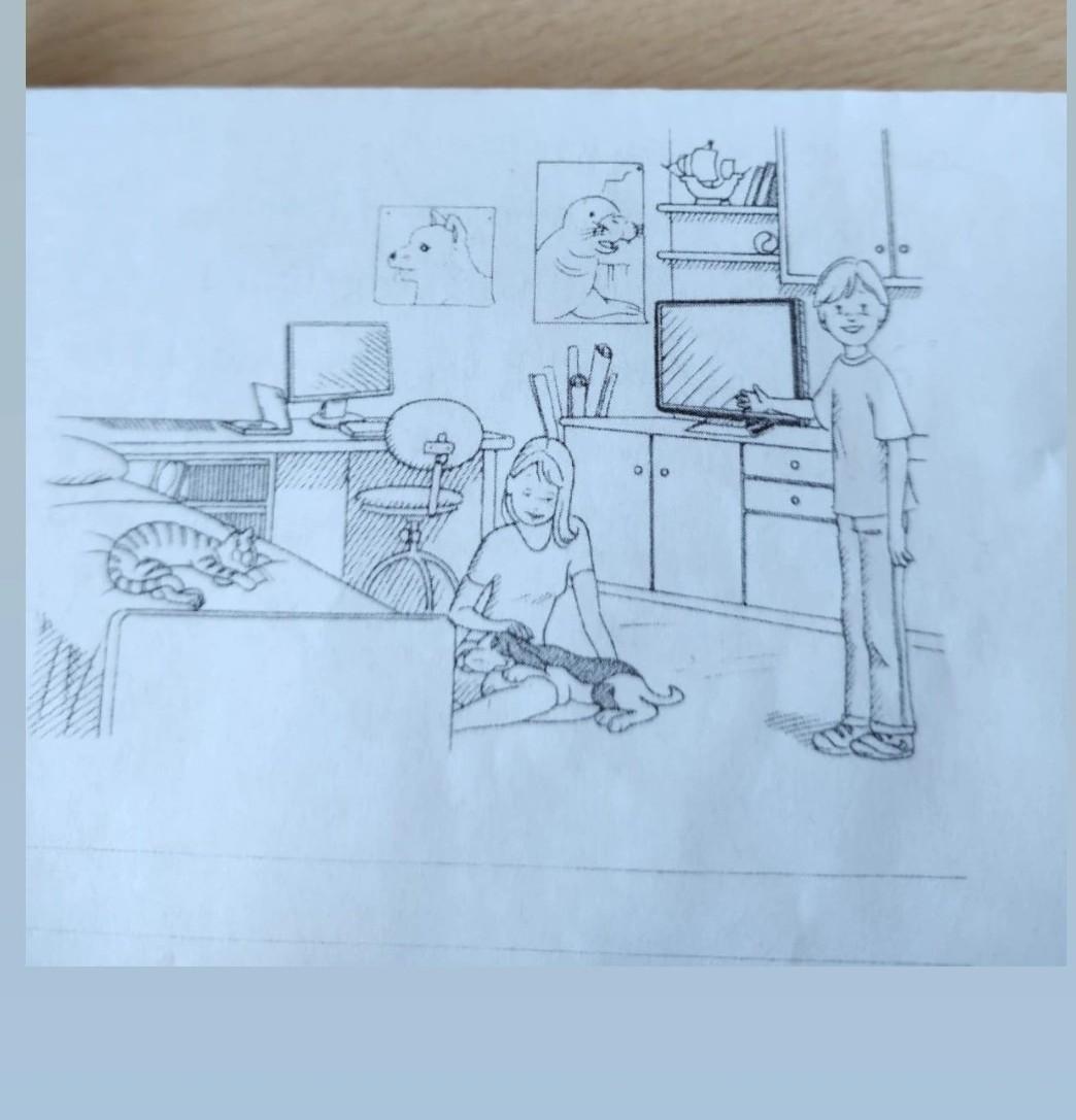 This is my room. Here my sister. She loves o dog and cat. I sometimes watch channel in the evening. I usually play computer games. I’d like to visit England. I have a father but is very busy. I enjoy my room.