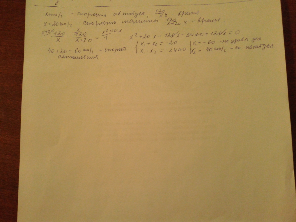 машина,скорость которой на 20 км/ч больше скорости автобуса.Найти