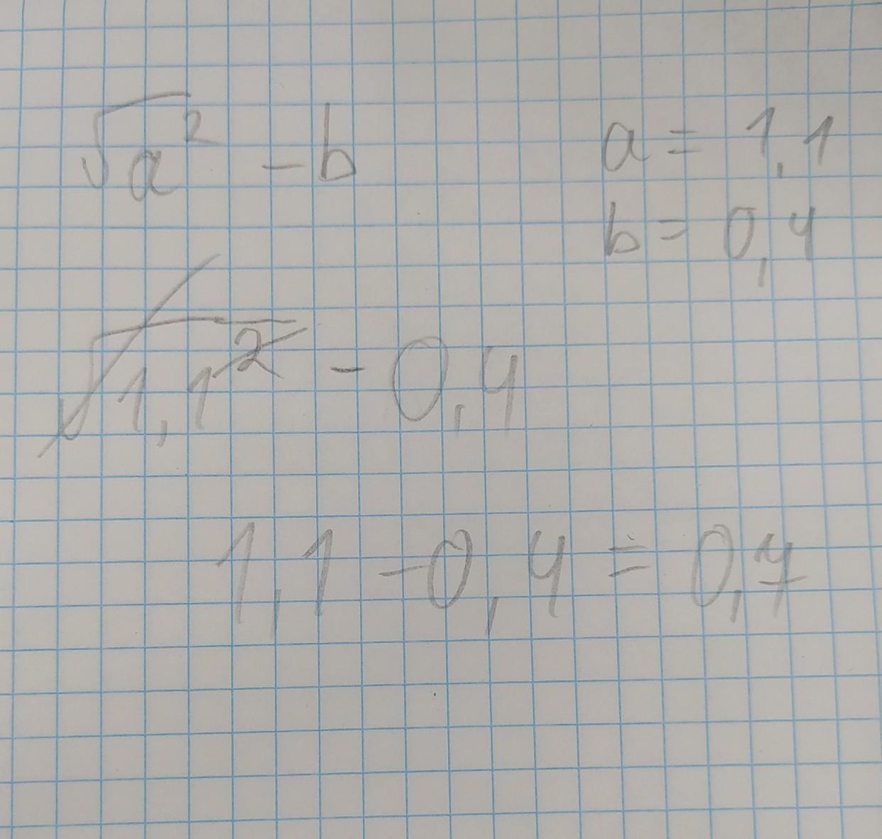 вот ответ. квадрат и корень сокращаются, следовательно 1,1 - 0,4 = 07