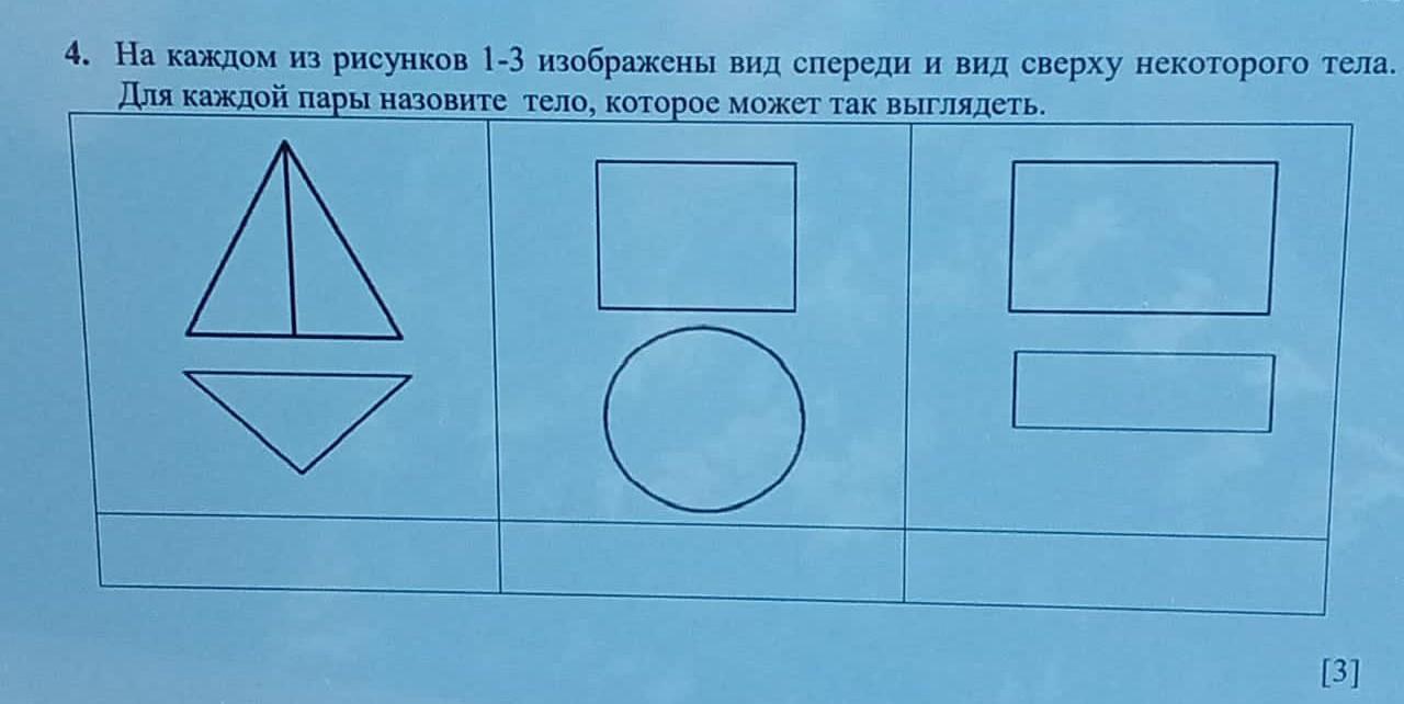 1)Пиромида 2)цилиндр 3)прямоугольный параллелепипед