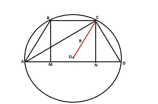 AD = 20 см, BC = MN = 8 см, BM = CN = 8 см, AM = DN, OC = R.