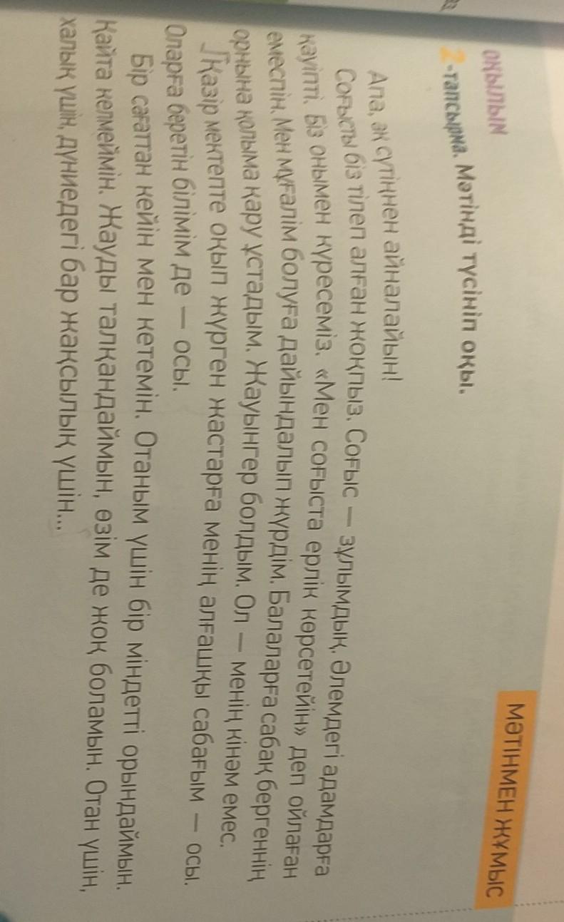 Бұл мәтіннің негізгі идеясы соғыстың зұлымдығы.