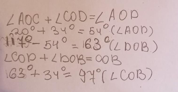 20°+34°=54°(угол AOD)