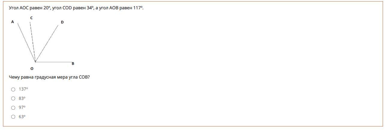 63°+37°=97°(угол COB)