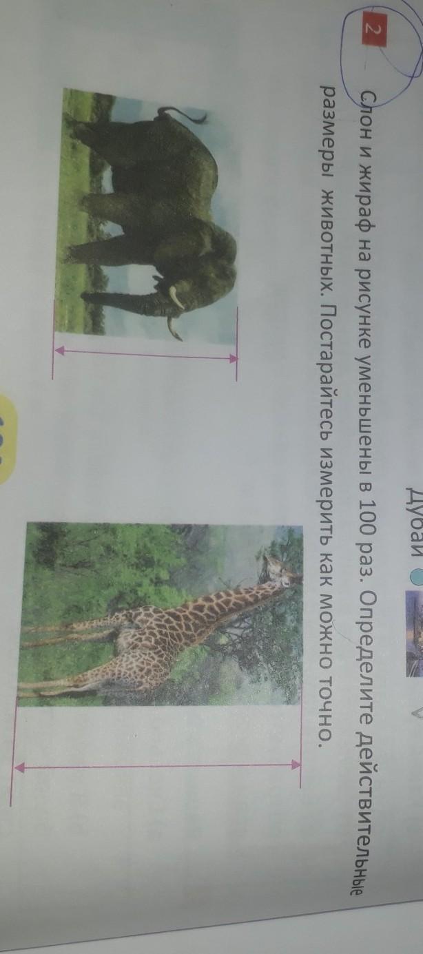 слон и жираф на рисунке уменьшено в 100 раз Определите действительные размеры животных постарайтесь измерить Как можно точно