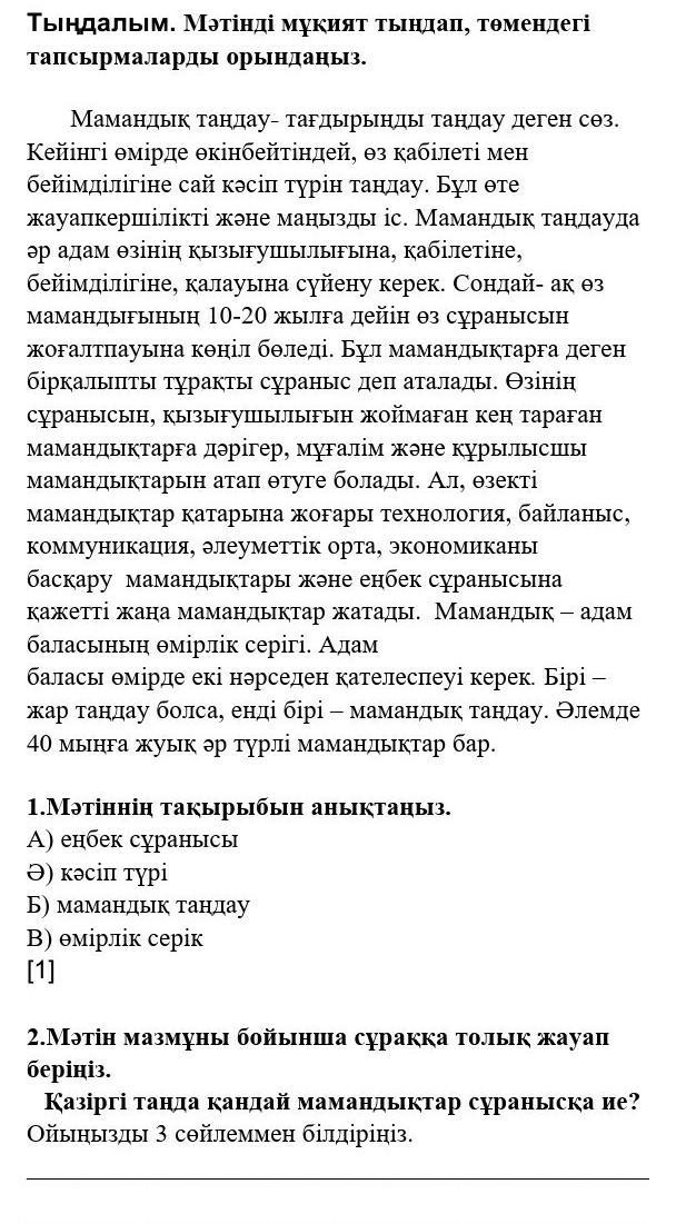 2 Қазіргі таңда сұранысқа ие мамандар был дәрігер. Дәрігелрел өте керек маман. Олар сіз көп адам ауырады, қайтыс болады. Дәрігер өте керек маман.
