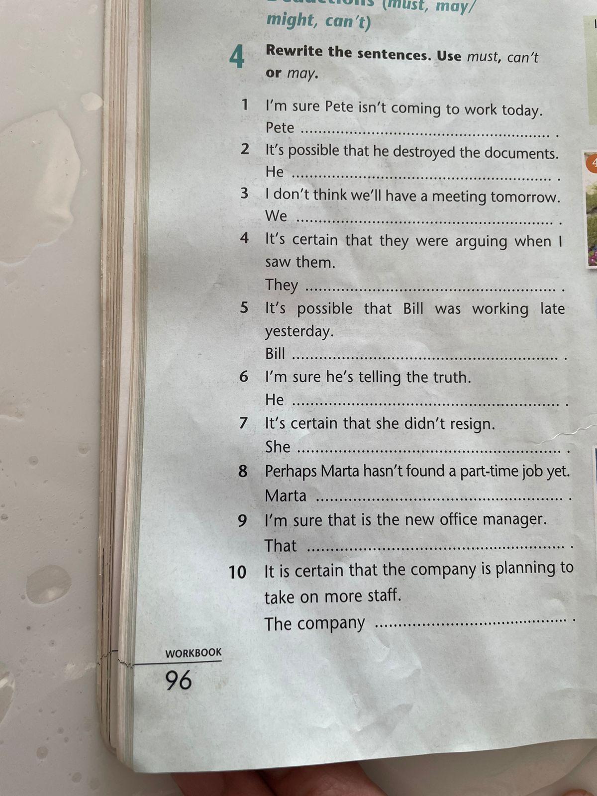 1. Pete may not come to work today.
