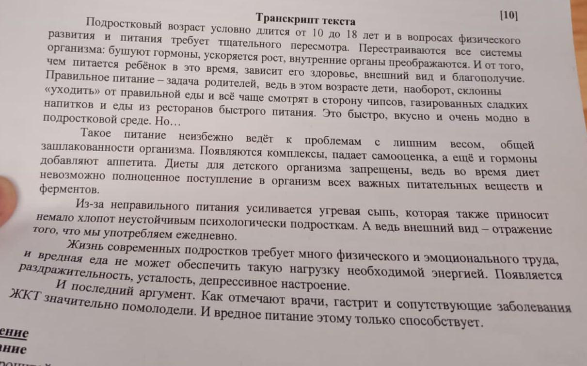 1) О чем этот текст 2) Какие последствия от неправильного питание ответь пж у меня говорение срочно надо