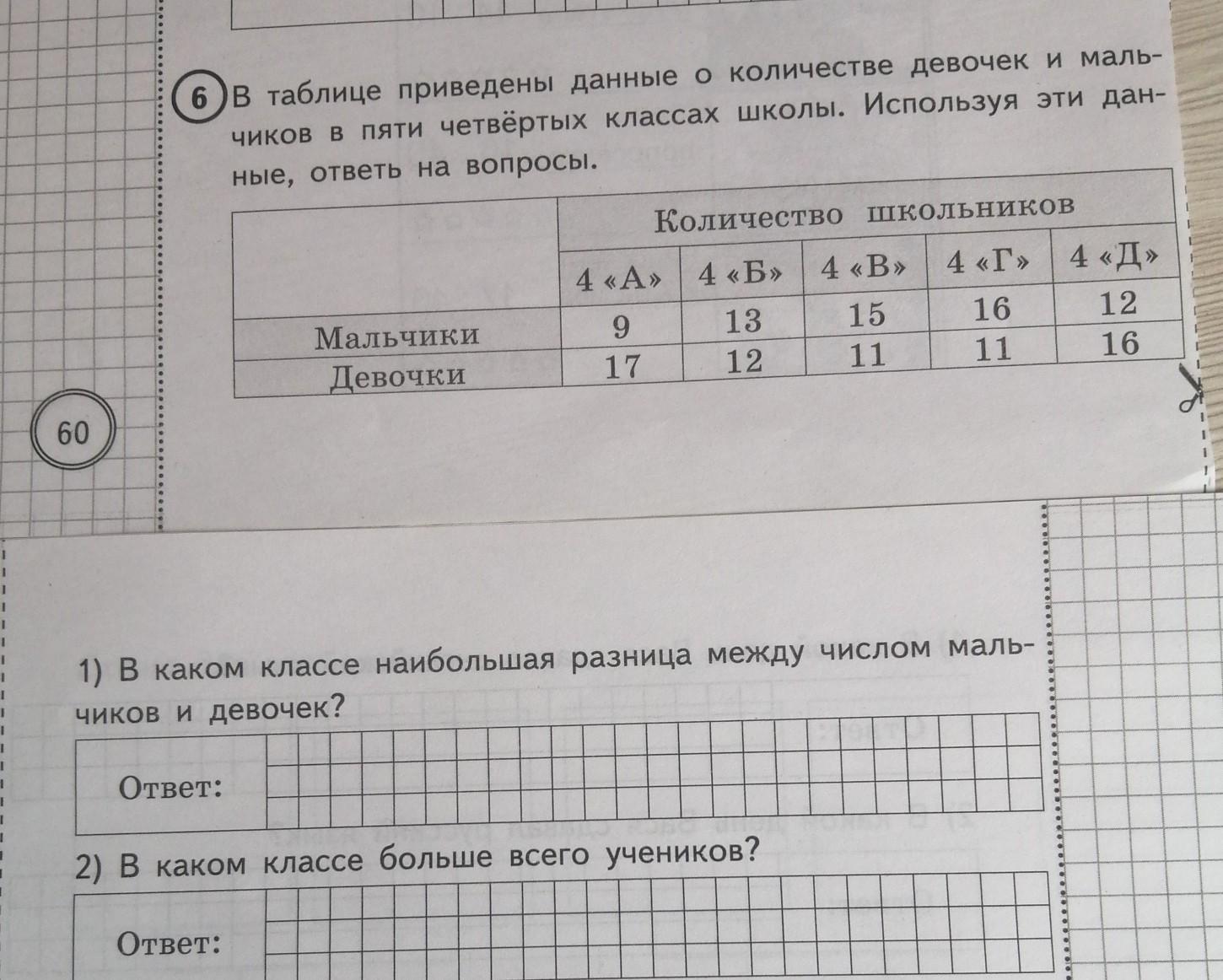 1) В 4 А наибольшая разница меду числом мальчиков и девочек.