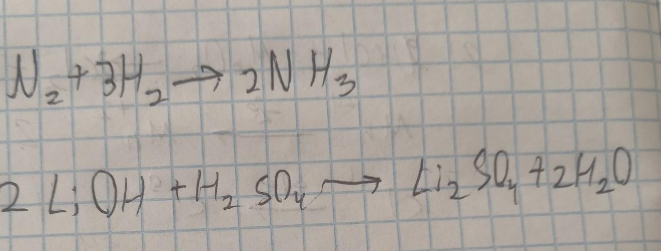 1) азот + водород - > амммиак