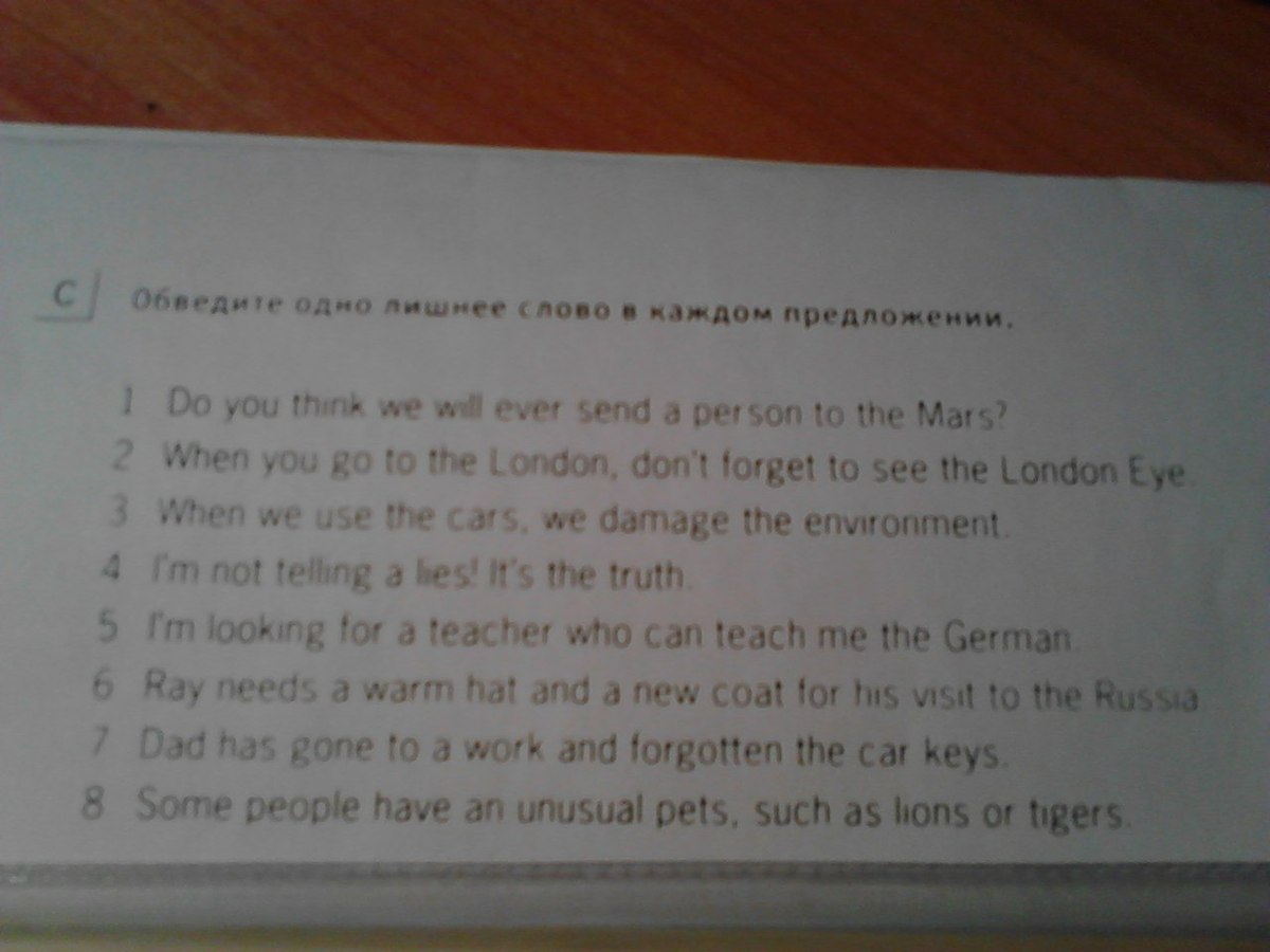 Do you think we will ever send a person to THE Mars? When you go to THE London, don't forget to see the London eye. When we use THE cars, we damage the environment. I'm not telling A lies. It's the truth. I'm looking for a teacher who can teach me THE German. Ray needs a warm hat and a new coat for his visit to THE Russia. Dad has gone to A work and forgotten the car keys. Some people have AN unusual pets, such as lions or tigers.