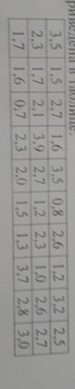 1. Продолжительность выполнения домашнего задания (в часах) по результатам опроса 30 учащихся приведена в таблице: 3,5 1,5 2,7 1,6 3,5 0,8 1,6 3.5 0.8 2.6 1.2 3,2 2,5 2,3 1.7 2,1 3,9 2,7 1,2 2,3 1.0 2.6 2.7 1,7 1,6 0,7 2,3 2.0 1.5 1,3 3.7 2.8 3.0 a) b) представьте данные в виде интервальной таблицы частот с интервалом в 1 час; определить накопленную частоту