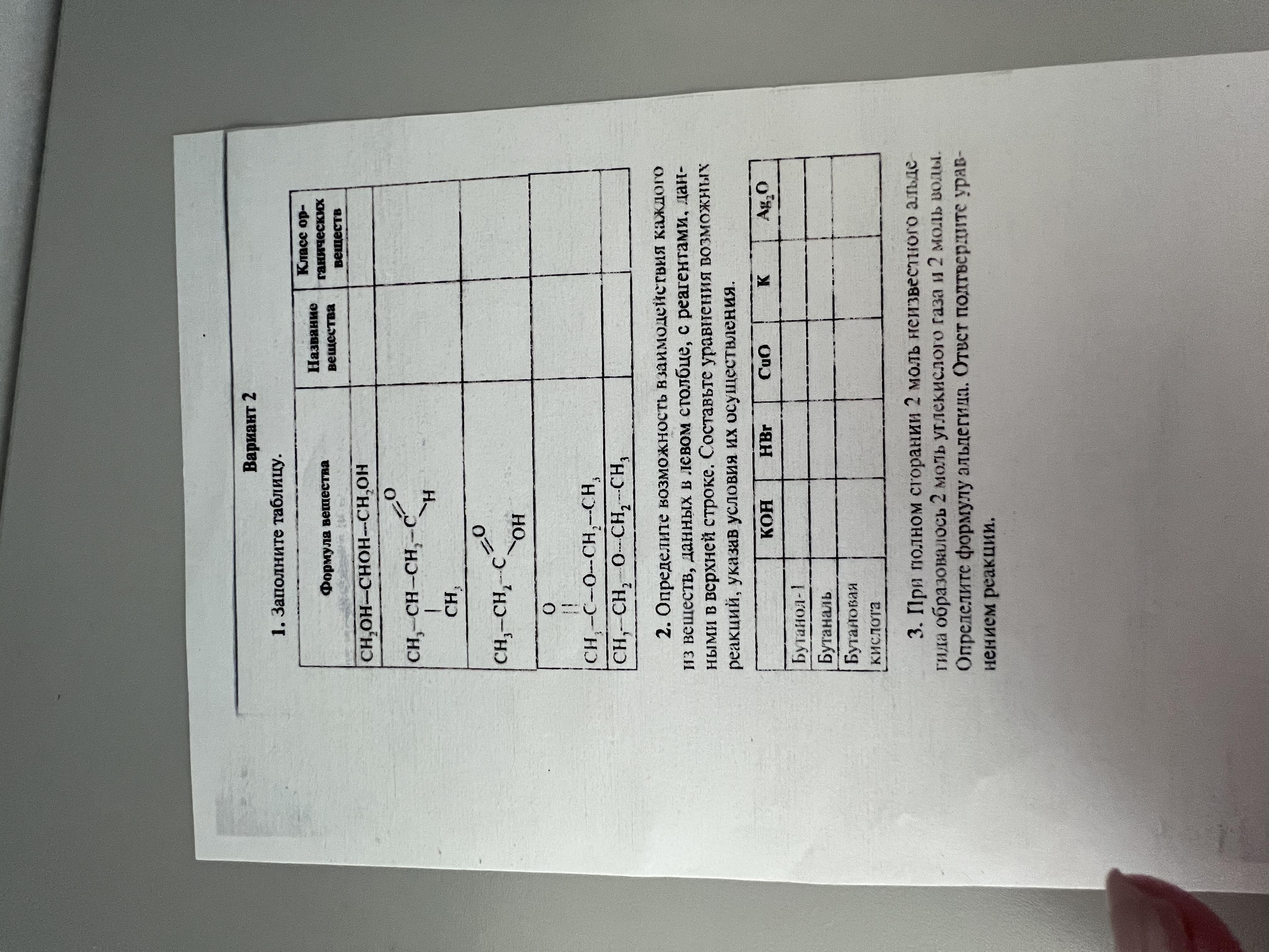 2) Бутанол-1 реагирует с HBr, CuO,K