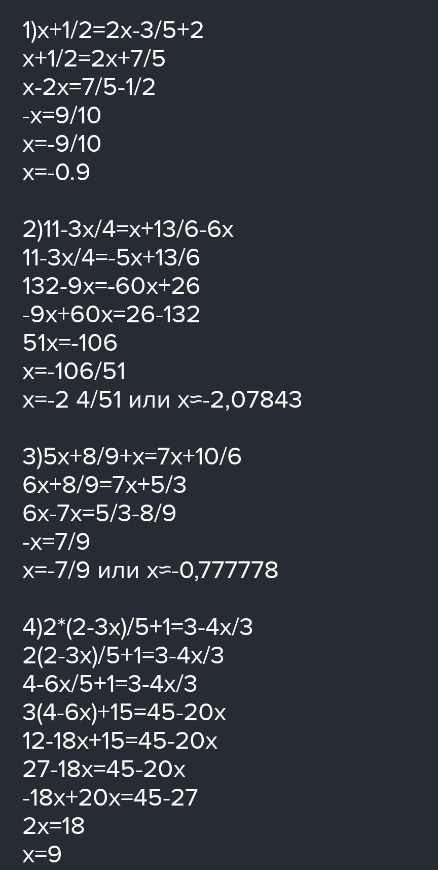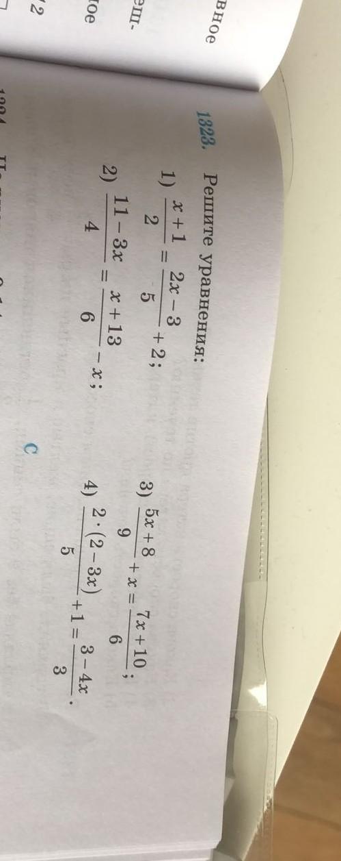 1323. Решите уравнения: 2x – 3 + 2; 2 5 x + 1 Н. 1) 3) 5х +8 7х + 10. 6 9 x + 13 11 – 3 x 2) 4 . 4) 2 · (2 – 3x) 6 3 - 4x +1= 3 5