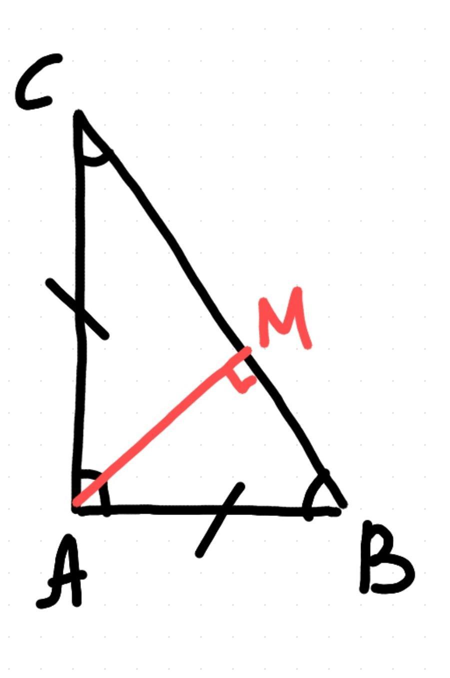 AM - медіана прямого кута рівнобедреного прямокутного трикутника ABC. Знайдіть кути трикутника ABM.