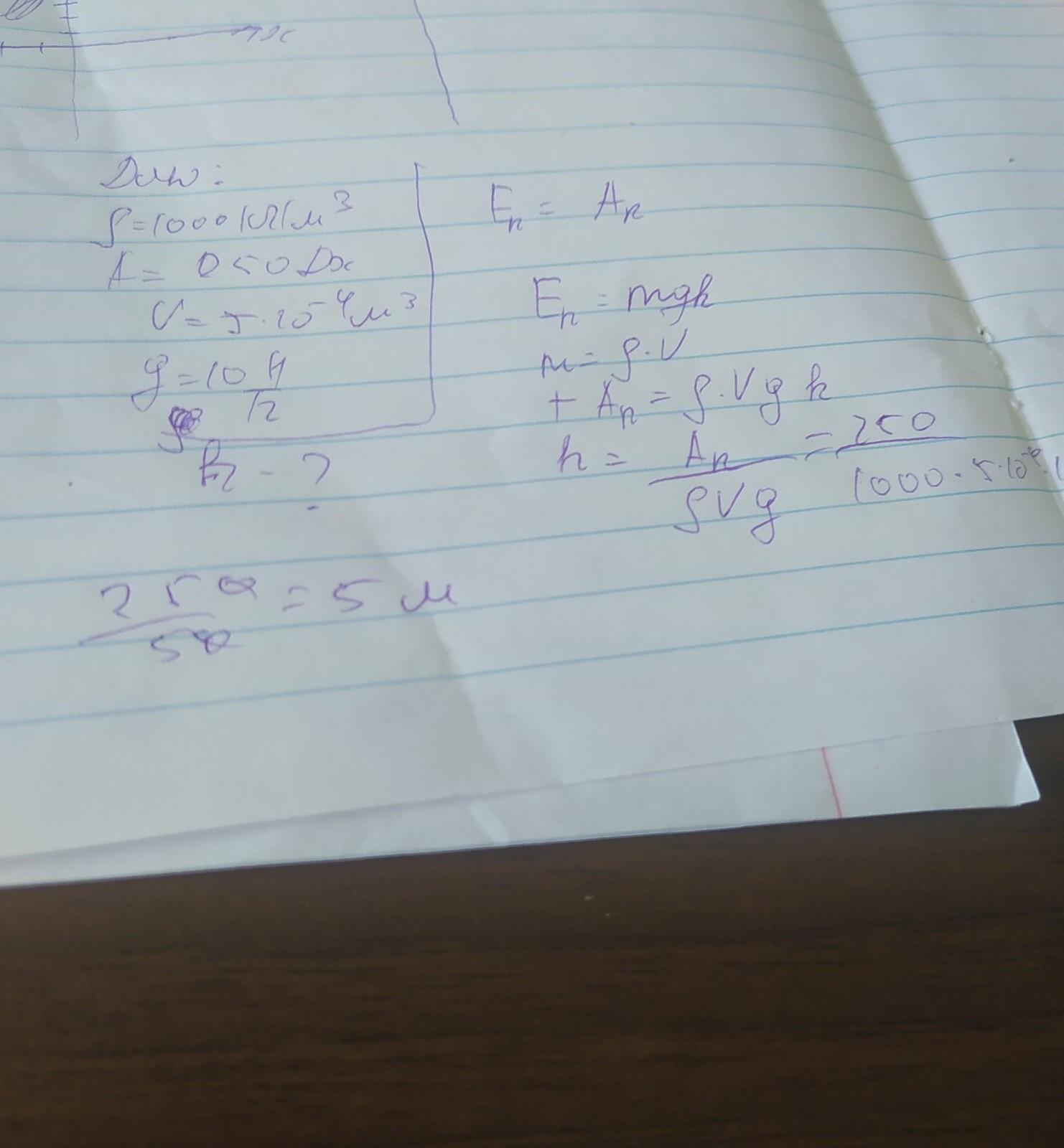 Для поднятия якоря судна выполняется работа A =1250 Дж. если объем якоря считать V =5 ×10 ¯⁴ м³, то с какой глубины он был поднят? ускорение свободного падения считать g :10 Н/кг. плотность воды считать p =1000 кг/м³