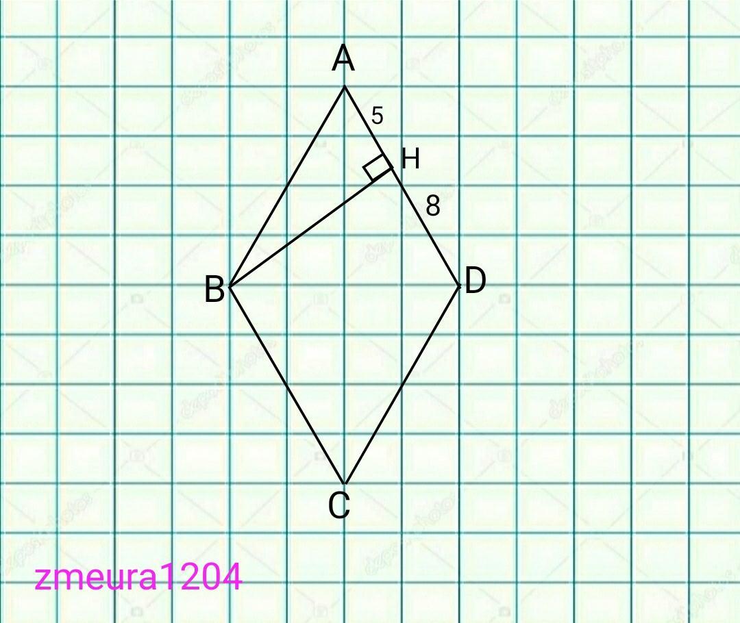 АD=AH+HD=8+5=13 ед сторона ромба.