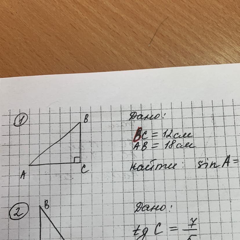 синус это отношение противолежащего катета к гипотенузе, то есть, вс/ав = 12/18=2/3
