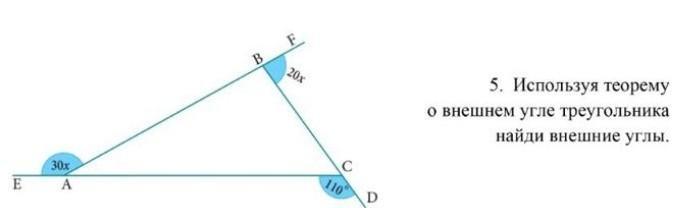 Внешний угол равен сумме двух внутренних, не смежных с ним, поэтому зная внутренние углы А (180-30х) и С (180-110х), получим