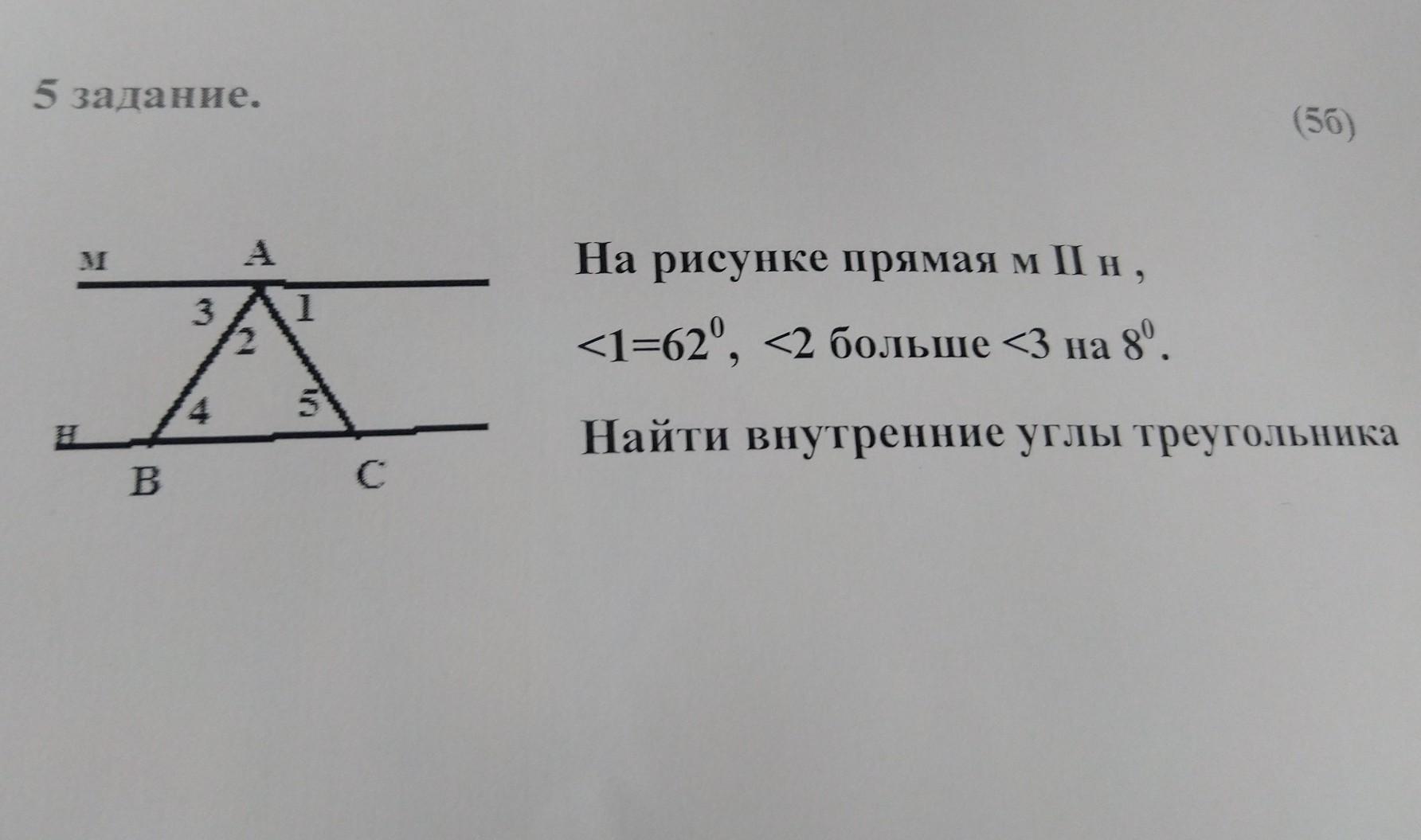 <1=<5=62° (Накрест лежащие углы при параллельных прямых)