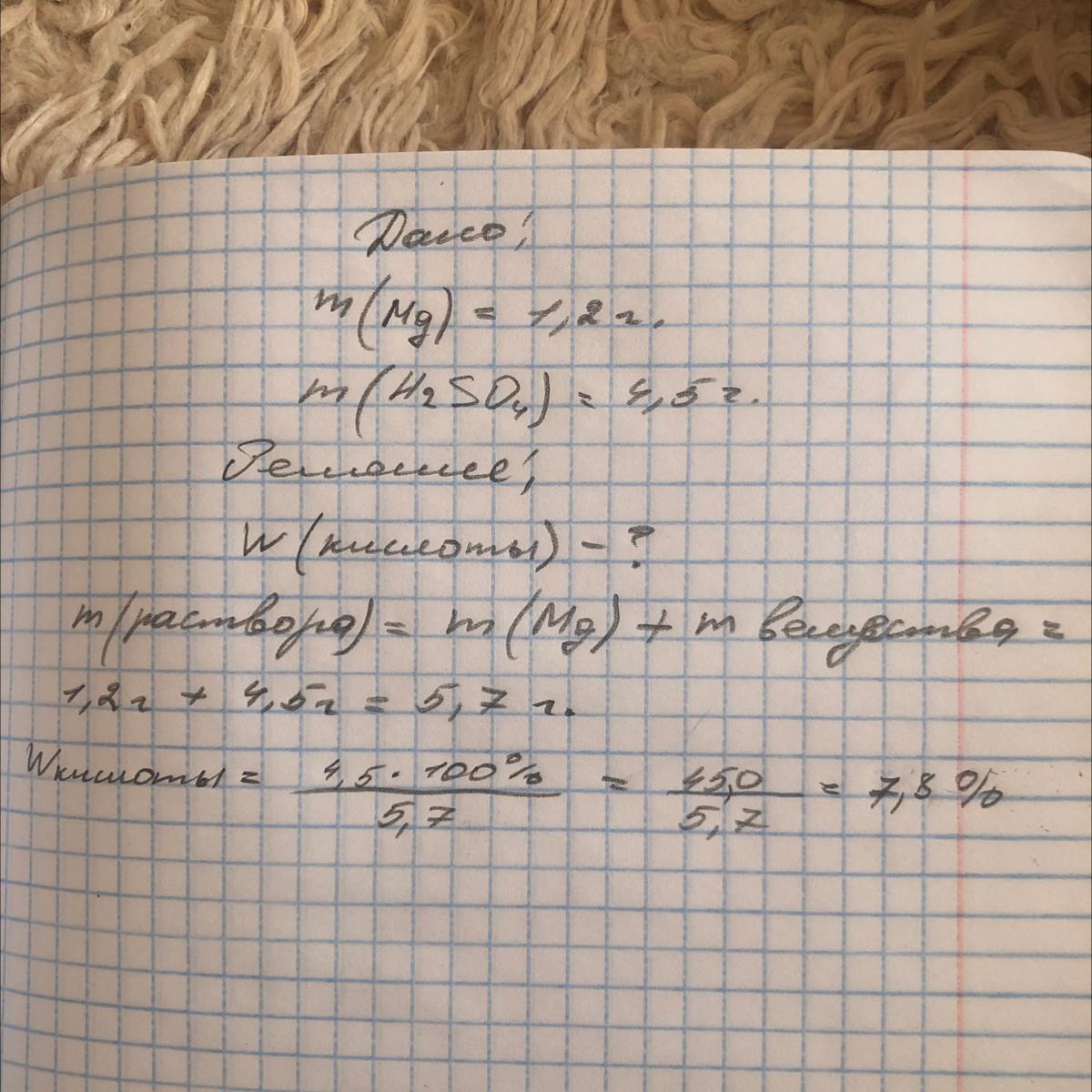 При взаимодействии магния массой 1,2 г с раствором серной кислоты получили соль массой 4,5 г. Определите выход продукта реакции (%).