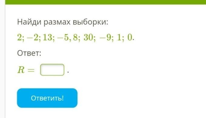 Размах выборки - разность между наибольшим и наименьшим значением, тогда: