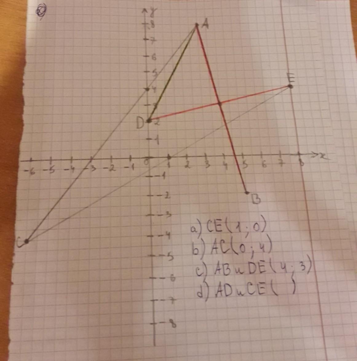 а) координаты точки пересечения отрезка CE с осью абсцисс;