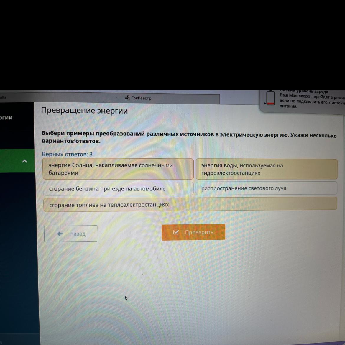 Выбери примеры преобразований различных источников в электрическую энергию. Укажи несколько